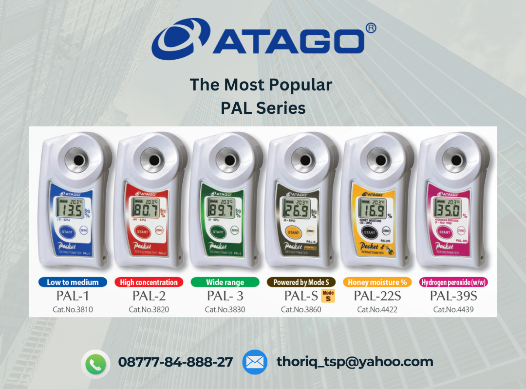 Kami menjual produk Atago CO.,LTD di Indonesia. Kami menjual produk- produk Atago seperti PAL series Refractometer, Master Handheld Refractometer, Viscometer, PAL pH meter, In Line Monitor dan sebagainya.